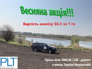 Аналіз ґрунту за 1 га - $ 6,5 з ПДВ* за адаптованою сіткою 10 га: